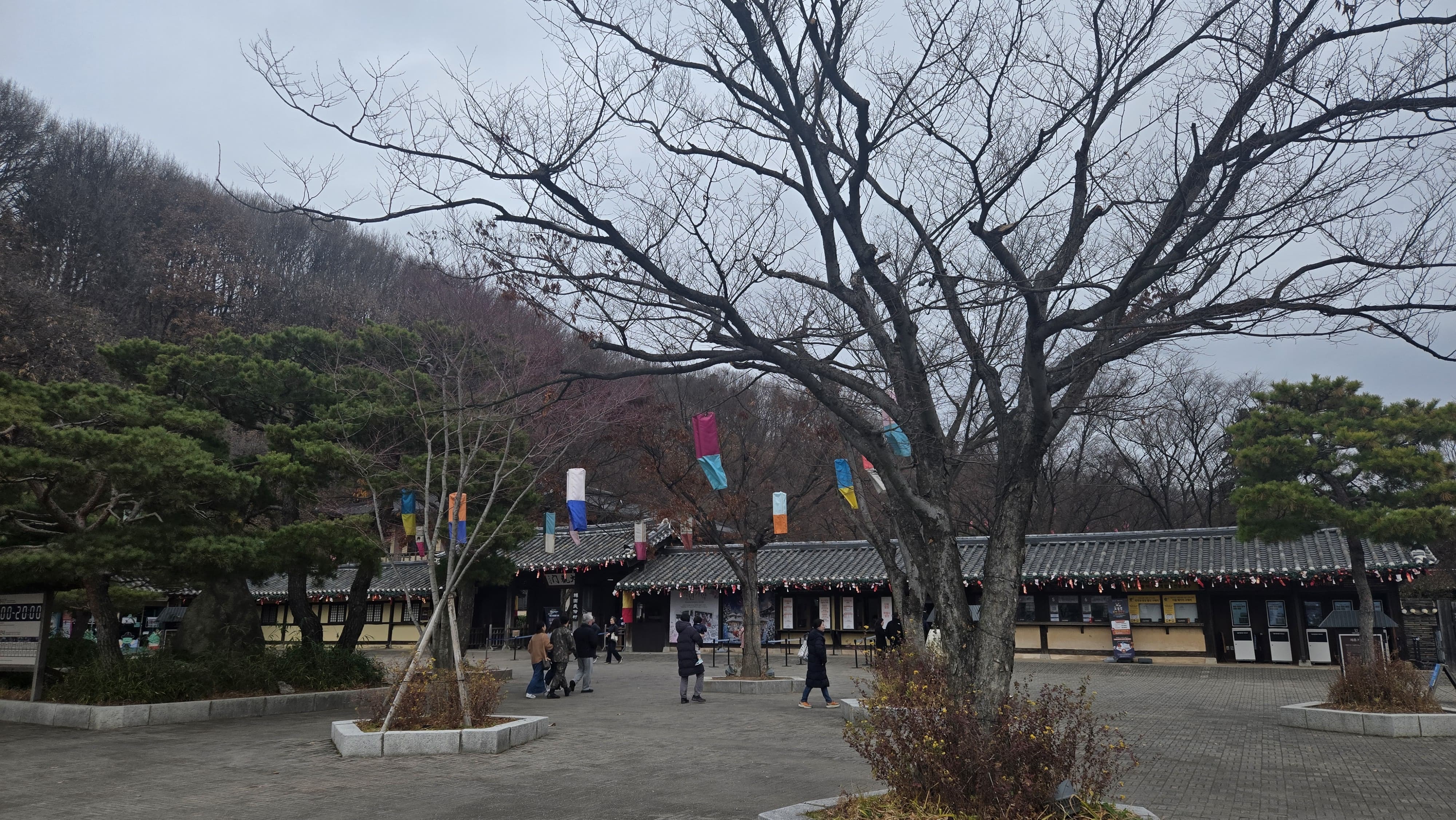 민속촌 안쪽으로 들어가면 전통 가옥과 나무 길이 자연스럽게 이어집니다. 사진으로 찍으면 ‘계절이 그대로 담긴 기록’이 됩니다.